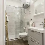 Ein Bügeleisen/Bügelbrett und eine Klimaanlage sowie ein Flachbildfernseher mit Satellitenkanälen stehen hier Gästen zur Verfügung. Der Innenraum ist mit Parkettbodenbelag ausgestattet und verfügt über ein Sofa. Für Komfort sorgen eine getrennte Toilette und eine Dusche in jedem Badezimmer. Des Weiterem gibt es einen Haartrockner, eine Duschhaube und Handtücher im Badezimmer.